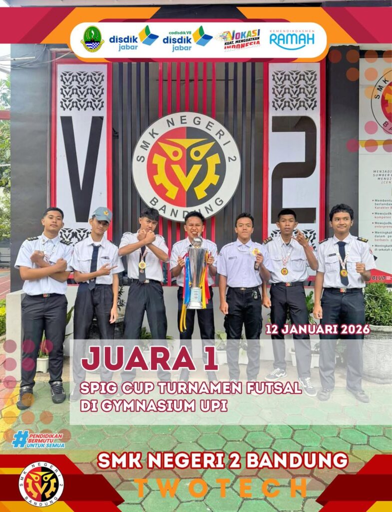 Prestasi membanggakan kembali ditorehkan oleh peserta didik SMK Negeri 2 Bandung (TWOTECH). Tim futsal SMKN 2 Bandung berhasil meraih Juara 1 pada ajang SPIG Cup Turnamen Futsal yang diselenggarakan di Gymnasium UPI, Senin (12/01/2026). Keberhasilan ini menjadi bukti nyata kerja keras, kedisiplinan, serta semangat juang tinggi yang ditunjukkan oleh seluruh anggota tim sejak tahap persiapan […]