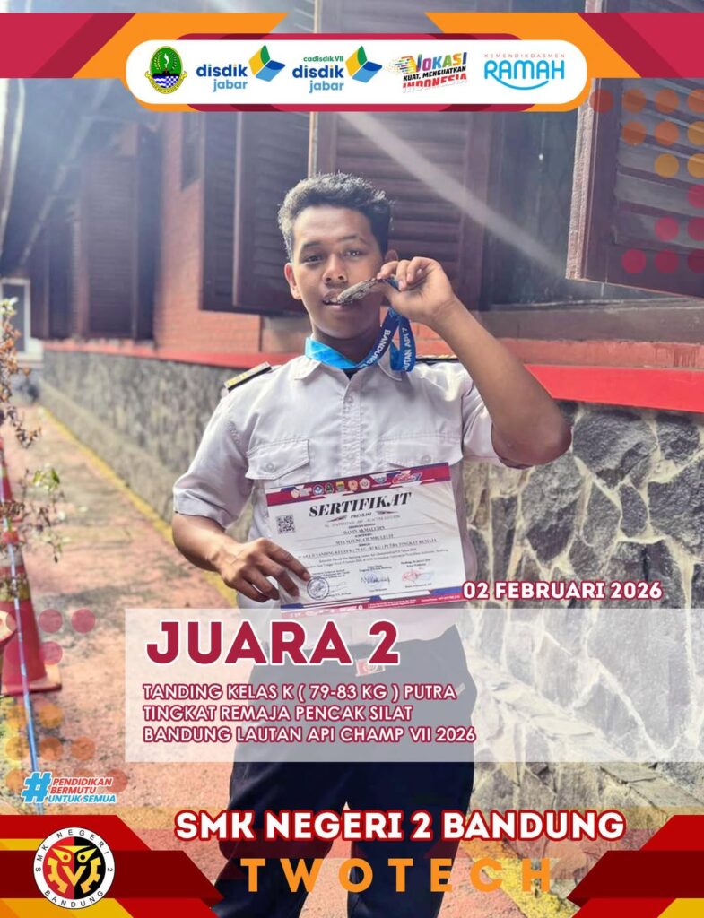 Prestasi membanggakan kembali ditorehkan oleh siswa SMKN 2 Bandung dalam bidang olahraga. Salah satu siswa terbaik berhasil meraih Juara 1 kategori U-21 Kumite +84 Kg Putra pada ajang STKIP Pasundan Open Tournament Series 2026 Piala Kemenpora. Kejuaraan bergengsi ini diikuti oleh atlet-atlet muda berbakat dari berbagai daerah, sehingga persaingan berlangsung ketat dan penuh semangat sportivitas. […]